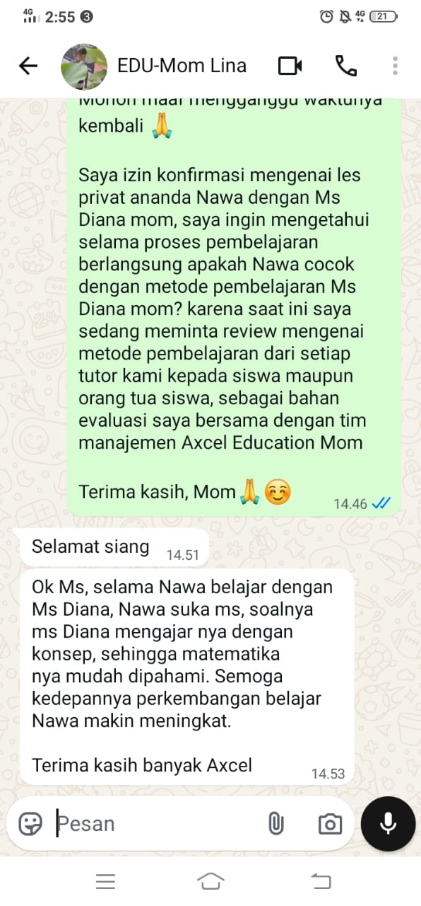 - Axcel Education: Ada evaluasi berkala untuk orang tua