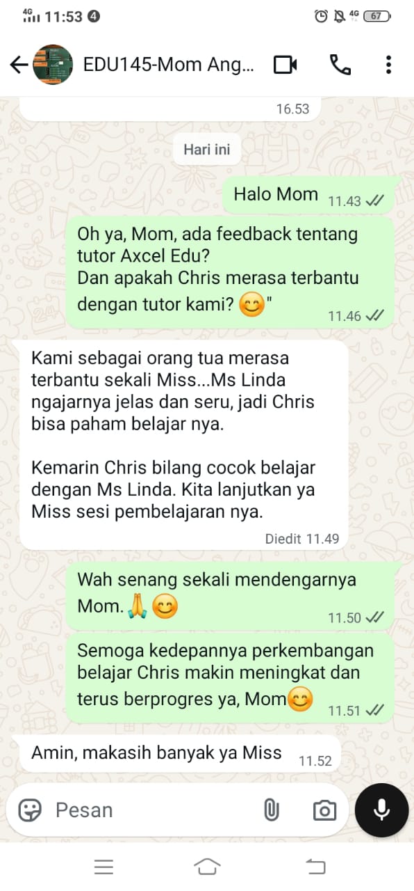Banyak siswa dan orang tua puas dengan layanan kami. Nih contohnya: